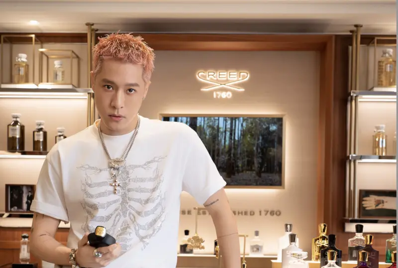 歌手周湯豪(如圖)今(25)日出席CREED香水記者會,提及他曾送香水給女生表達心意的往事,但沒有勇氣直接告白,只敢走在她後面,最後失敗收場。(圖/CREED提供)