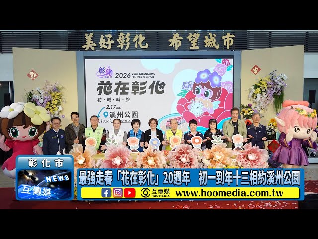 【互傳媒/記者 林明佑/彰化 報導】全台春節走春第一品牌「花在彰化」迎來20週年里程碑!彰化縣政府今(3)日於縣府中庭舉辦記者會,縣長王惠美宣布2026「花在彰化」以「花城時旅」為主題,從大年初一(2月17日)至正月十三(3月1日)在溪州公園盛大登場,結合繽紛花藝、9大假日主題活動與20週年互動體驗,邀請全國民眾春節走春、回娘家,一同見證彰化花卉產業的轉型與美學成果。
