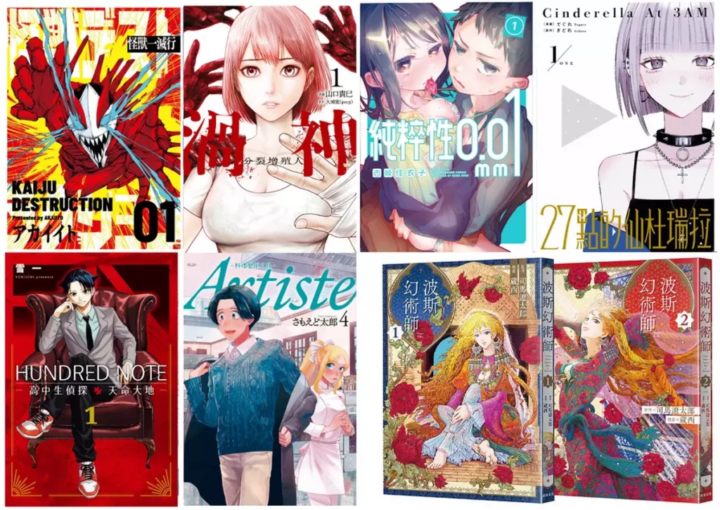 アカイイト老師《怪獸一滅行 1》一部顛覆價值觀的暗黑系怪獸戰鬥故事;由兩位漫畫家大城密及山口貴巳合作的新作《渦神 分裂增殖人1》被切斷的小指,居然增殖出來另一個自己!? 蔓延至家中的心理恐怖故事;《HUNDRED NOTE-高中生偵探 天命大地-1》當有事件發生,就必然會有「名偵探」登場,預定明年遊戲化;《純粹性0.01㎜ (01)》ヤンマガWeb總讚數超過2.5萬─人氣沸騰的砲友系愛情喜劇;《27點的仙杜瑞拉 1》直播主VTuber和插畫師之間,關於認同與戀愛的寓言;擁有絕對味覺的吉路貝在巴黎的料理學習之路還有更多考驗等著《Artiste -料理藝術之路- 4》。