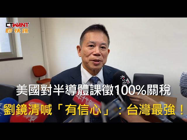 [周刊王CTWANT] 立法院經濟委員會7日舉辦「美國對等關稅底定後產業全球布局」報告,邀請國發會主委劉鏡清報告,剛好在7日凌晨4點半時,美國總統川普剛公布要對半導體課100%關稅,但在美國製造可豁免。劉鏡清表示,政府正在跟美國德州談免州稅,且大廠4月時表示可全球布局,台積電直接輸美的晶片很少,預估影響不大,反而要關注全球第五大晶圓代工廠格羅方德(GlobalFoundries)的後續動向。