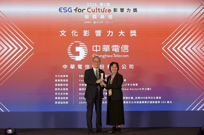 文策院首次設立「ESG for Culture影響力獎」用以表彰營利事業體與文化內容業者合作模式的創新性、影響力及可持續性,中華電信以多項專案參加評選,包括投資影視作品《魔法阿媽2-魔法小豆苗》、《原子少年2》、《The Outlaw Doctor化外之醫》支持台灣優秀團隊創作與促進IP多元發展;舉辦全台規模最大、最具影響力的兒童數位內容賽事「FunPark創意說故事數位繪本創作大賽」;以國內唯一獲碳足跡標章認證的電子書平台「Hami書城」致力推廣數位平權;攜手台南市政府推動採用5G元宇宙平台的「臺南400」文化展演。各項專案皆呼應與文化內容業者共創 ESG 影響力行動,持續壯大內容產業生態系之精神,成功摘下全部7座獎項。