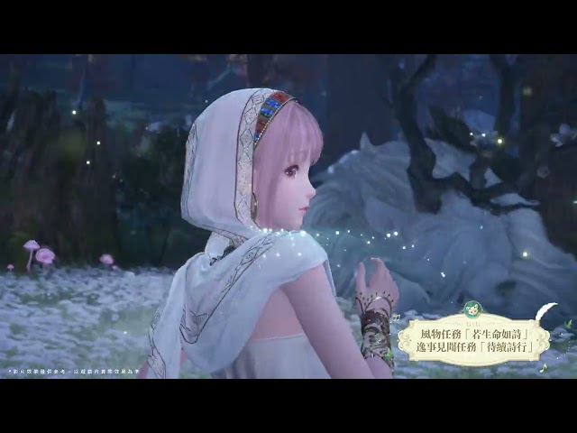 2.1版本更新後,完成伊贊之土主線第二章「覆於此地的面紗」即可解鎖全新風物任務「若生命如詩」。森林靜默、冬椏巨獸沉眠,別離與新生交織成一首生命詩篇。完成任務可獲得【共鳴水晶】、【鑽石】及限定名片【謐甯枯榮】等豐厚獎勵。