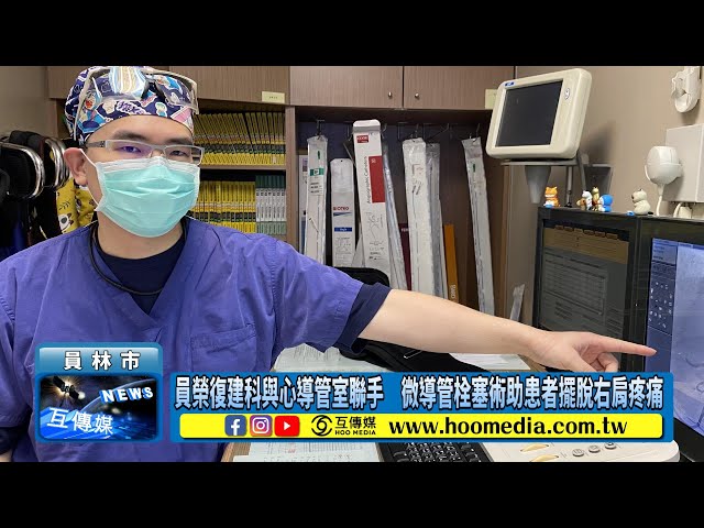 【互傳媒/記者 林明佑/彰化 報導】一名46歲男子約半年前騎機車發生車禍,連人帶車摔倒,右肩著地受傷,雖有吃藥、復健,但晚上睡覺翻身壓到仍會痛醒,他到員榮醫療體系員榮醫院復健科求診,復健科主任陳冠霖診斷後,建議採用微導管栓塞術,阻斷增生血管,由員榮心導室主任林彤宥執行手術,術後疼痛情況明顯減少。