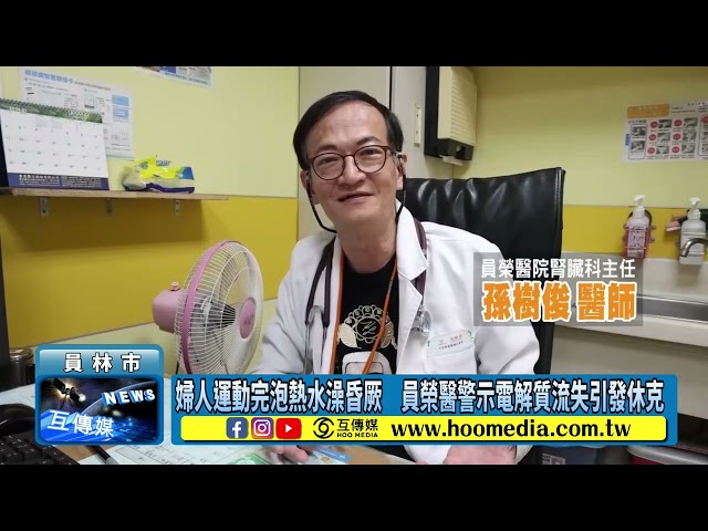 【互傳媒/記者 林明佑/彰化 報導】彰化縣一名中年女性日前到運動中心運動後泡湯約半小時,之後突然感到頭暈、四肢無力,隨即昏厥倒地,被緊急送往員榮醫院急救。患者到院時血壓偏低,心跳過快,立即安排抽血與心電圖檢查,發現患者除血壓過低與心律不整外,血液中鉀離子濃度明顯偏低,診斷為「嚴重低血鉀合併低血壓,導致暈厥休克」,所幸即時送醫,補充補充電解質與靜脈輸液治療後,平安出院。