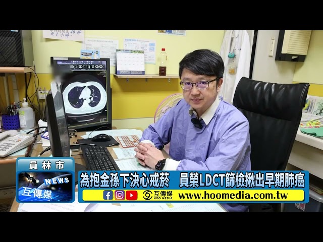 【互傳媒/記者 林明佑/彰化 報導】66歲陳姓男子抽菸30餘年,雖然家人一直勸他戒菸,但始終未能成功。去年年底第一個孫子誕生,他為小嬰兒不要吸二手菸,下定決心戒菸,前往員榮醫院胸腔內科主任林鴻慶醫師戒菸門診。因符合國健署肺癌補助計畫,接受「低劑量電腦斷層(LDCT)」篩檢。沒想意外揪出右下肺部有一處直徑約 1公分的毛玻璃狀病變,疑似早期肺腺癌。