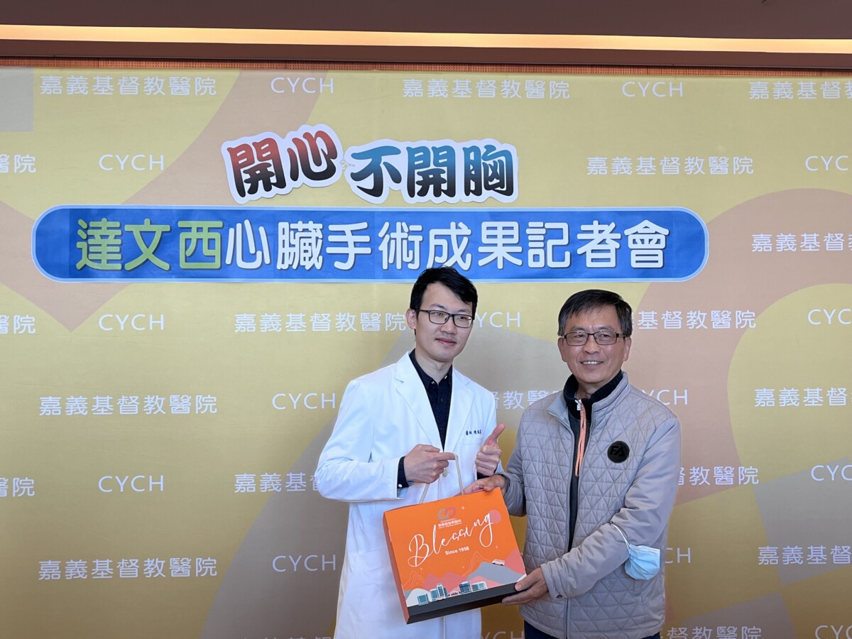 【記者 劉芳妃/嘉義市 報導】隨著技術成熟與團隊經驗累積,達文西心臟手術這樣的高端醫療,在嘉基已成為穩定且常用的治療選擇,去年已累積逾三十例臨床經驗,成功治愈多位心臟疾病患者,並縮短住院與恢復時間,讓患者重拾正常生活。為讓民眾更了解這項重要醫療進展,嘉基特今(23)日舉辦「達文西心臟手術成果記者會」接受達文西心臟手術的徐先生現身會場見證醫療科技為生命帶來的改變。
