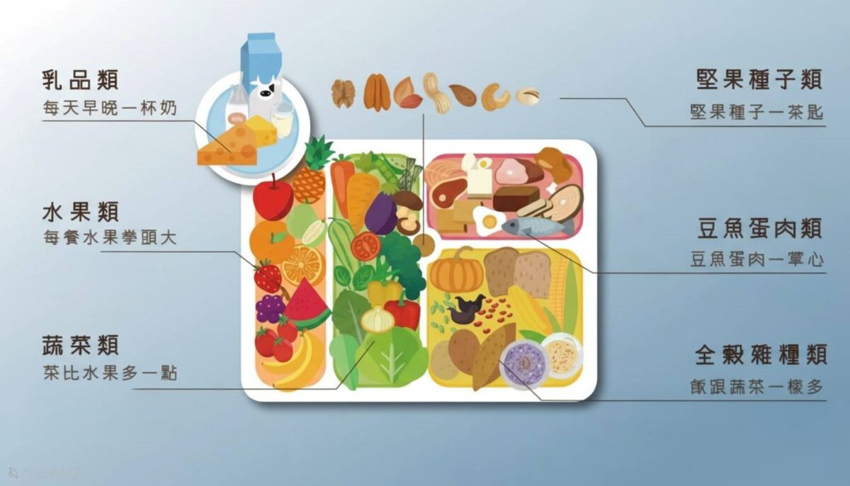 鄭雅綺醫師建議,以國民健康署推廣的「我的餐盤」原則作為年節飲食的基礎,落實六大類食物均衡攝取。每餐水果約拳頭大小、蔬菜比水果再多一些,全穀雜糧份量與蔬菜相當,豆魚蛋肉類控制在一掌心,並適量攝取堅果種子作為好油脂來源,就能避免過量進食高熱量食物。