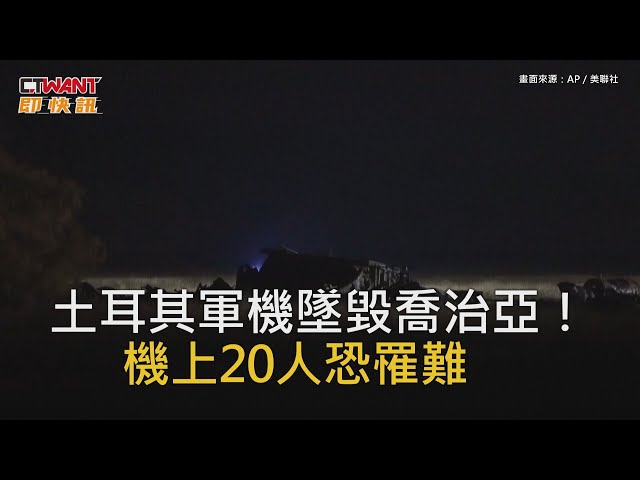 [周刊王CTWANT] 一架隸屬於土耳其空軍的C-130軍用運輸機昨(11)日自亞塞拜然起飛,在靠近亞塞拜然邊境的喬治亞境內卡赫季州(Kakheti)的西格納吉(Sighnaghi)行政區墜毀。土耳其國防部長今(12)日證實,機上20人已全數罹難。