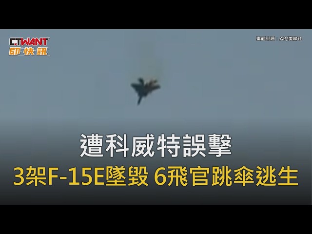 [周刊王CTWANT] 美國與以色列對伊朗發動軍事打擊後,伊朗隨即展開反擊,戰火也波及周邊國家,使中東局勢緊張。最近國外社群和影音平台瘋傳一段美國戰機在科威特墜毀的影片,引發熱議。對此,美方2日證實,有3架F-15戰鬥機因科威特友軍「誤傷」在其境內墜毀,機上6名飛行員及時彈射逃生,安全生還。
