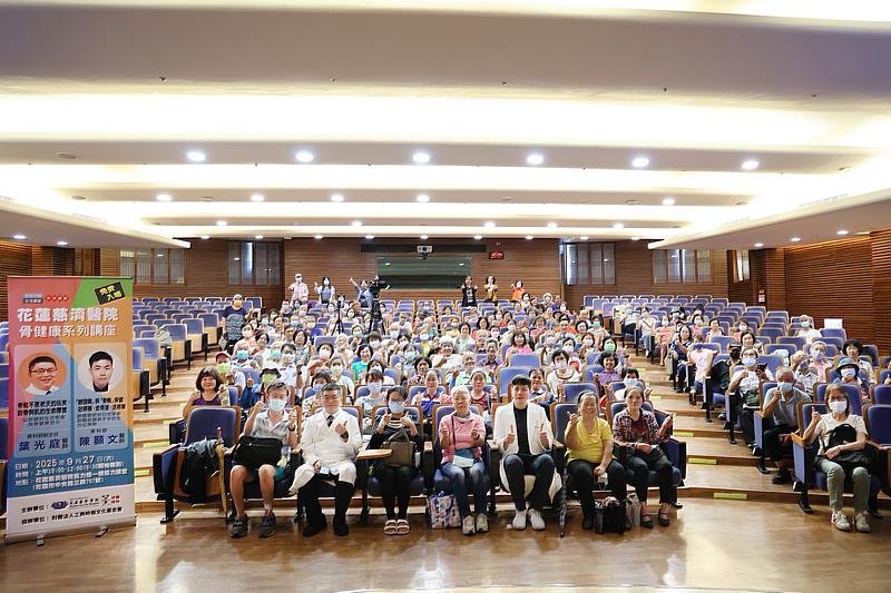 花蓮慈濟醫院骨科部副主任、骨鬆照護中心葉光庭醫師主講「骨鬆不是老天的玩笑:談骨與肌的生命厚度」、骨科部陳顥文醫師主講「『咖頭烏』與『骨輪』保健:站得穩、走得遠、活得樂」,兩位醫師從預防骨質疏鬆的重點到保養關節,以達到健康老年生活為目標,針對日常保養、飲食、運動到藥物與手術治療等一一釋疑,讓超過一百五十位民眾反應熱烈,勤作筆記。