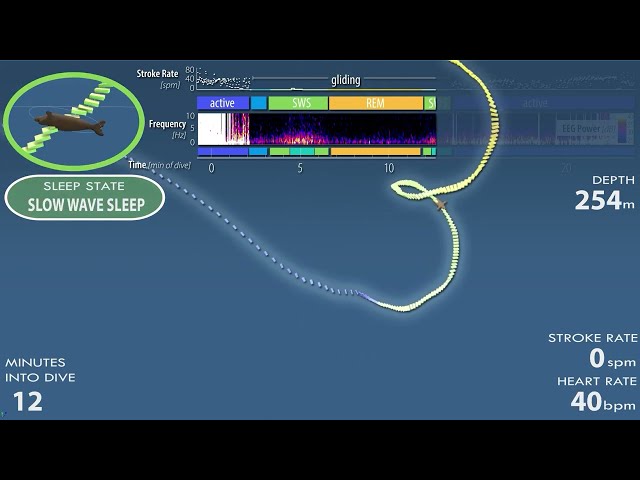 這項發現來自普克里普斯海洋研究所(SIO)研究員肯德爾巴爾(Jessica Kendall-Bar)。他把類似泳帽、能測量大腦活動的裝置戴在北方象鼻海豹頭上,以了解牠們何時睡眠,並以感測器記錄運動與心律數據。