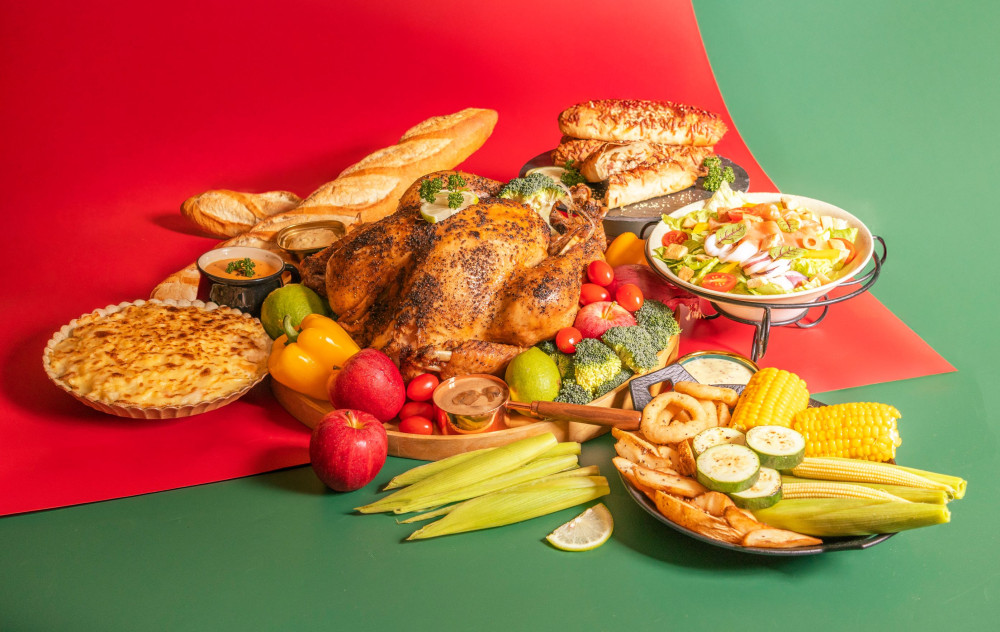 「耶誕溫饗夜派對盛餐」,根據不同派對人數讓每位顧客都有多元選擇,8-10人份「饗YA尊爵火雞派對餐」內含重達6公斤香草脆皮火雞,金黃酥脆外皮包裹著柔嫩多汁雞肉,咬一大口,肉汁與療癒感一起擴散在味蕾中,搭配上內餡濃郁白醬焗烤菇菌通心粉、鹹香起司雞肉捲、凱薩海鮮沙拉等可口配菜,讓您的每場聚會都獲得大大滿足!另還提供6-8人份「獵人式烤雞溫饗家庭餐」、4-6人份「德國豬腳歡聚餐」,如想單點也有主餐、法式長棍麵包、南瓜奶油濃湯,多元選擇讓您嗨翻派對又澎派無比!