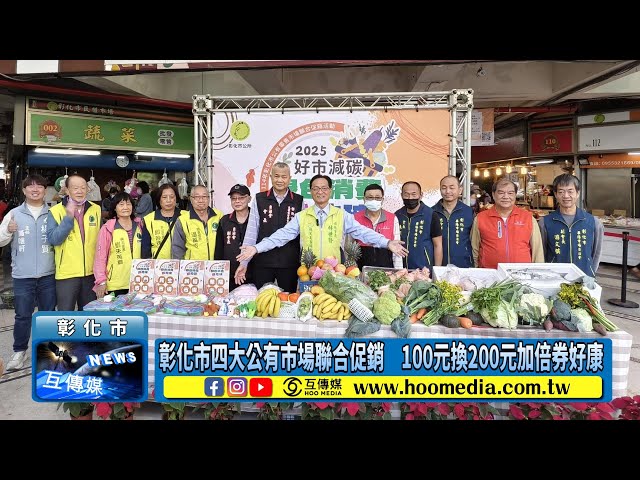 【互傳媒/記者 林明佑/彰化 報導】為促進彰化市的市場經濟活絡,彰化市公所將於12月19、20日與12月26、27日,連續兩個星期五、六,在民生市場、華陽市場、民權市場與南門市場等4處公有市場,舉辦「彰化市114年市場聯合促銷活動」,活動配合經濟部【好事減碳 綠色消費愛地球】新理念,並延續「2025傳市品牌-眾星雲集 好市加倍劵」為行銷主題,共準備了2,400張加倍券,民眾憑100元現金即可兌換到每張價值200元的加倍券,加倍好康!