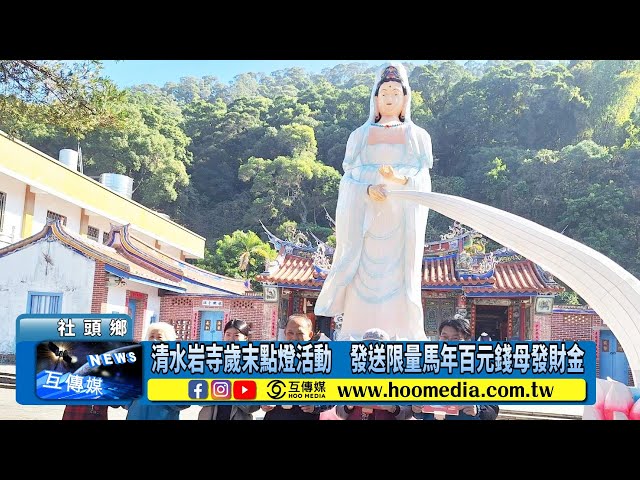 【互傳媒/記者 林明佑/彰化 報導】歲末迎新之際,彰化縣社頭鄉歷史古剎清水岩寺將於12月20日晚間7時,在寺前廣場舉辦一年一度「歲末點燈祈福」活動,邀請鄉親闔家齊聚佛前燃燈祈福,為新的一年點亮希望與平安。活動結束後,廟方也將發送限量「馬年百元錢母」與信眾結緣,象徵財運亨通、好運到來,歡迎民眾提早到場,共同感受歲末溫馨祥和的祈福氛圍。