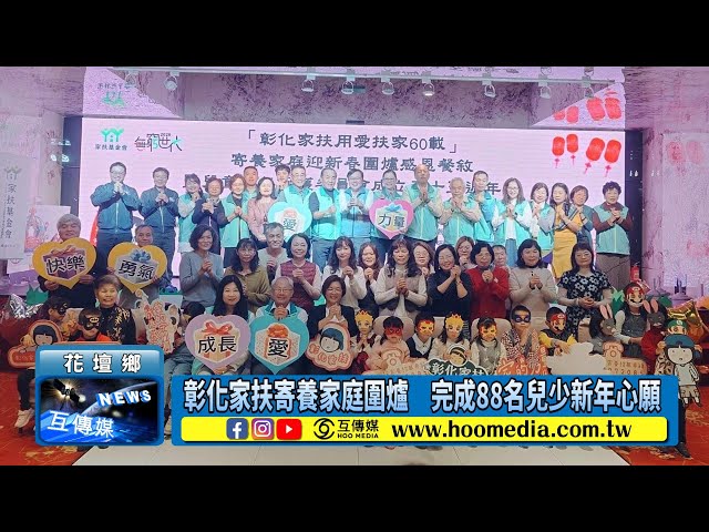 【互傳媒/記者 林明佑/彰化 報導】彰化家扶兒童少年保護委員會於今(17)日在全國麗園大飯店舉辦「彰化家扶用愛扶家60載—寄養家庭迎新春圍爐感恩餐敘暨兒童少年保護委員會成立35週年慶」,邀請近180名寄養家庭家長與寄養兒少共聚一堂,提前感受年節團圓氛圍。彰化縣長王惠美到場關心,逐桌向寄養家庭致意,表達對寄養服務與兒童少年保護工作的重視。活動中,致贈每名寄養兒少1,000元紅包及新年禮品給予寄養家庭,並為孩子準備圓夢禮物,共完成88名寄養兒少的新年心願,讓圍爐餐敘充滿溫馨氣氛。