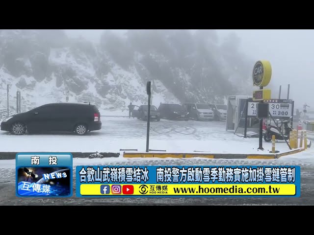 【互傳媒/記者 蘇彩娥/南投 報導】因近日低溫影響,合歡山武嶺地區出現積雪及道路結冰情形,為確保用路人行車安全,南投仁愛警分局依現場天候狀況,即時啟動雪季交通疏導及安全維護勤務,自28日7時起,於相關路段實施「限加掛雪鏈通行」措施,並將視天候及交通狀況機動調整管制方式。