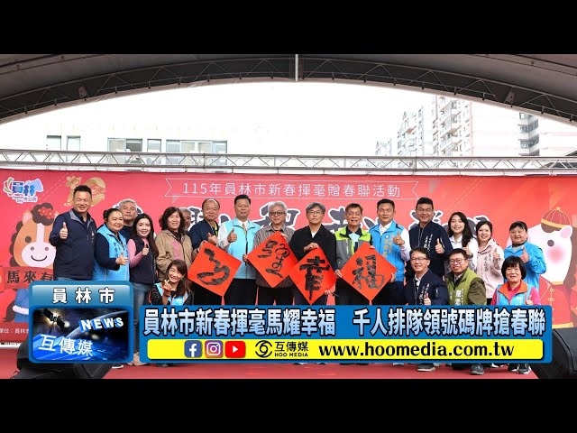 員林市代理市長賴致富表示,每年市公所辦理新春揮毫活動,旨在延續傳統文化,並讓家家戶戶除舊佈新迎新年。今天是員林市公所新春活動的首部曲,二部曲是員林燈會,將於2月14日點燈。相當感謝彰化縣王惠美縣長及代表會對於經費的大力支持,2026年「員林燈會」與「彰化月影燈季」、「花在彰化」並列彰化三大新年活動。員林第三部曲是元宵燈會,將邀請芒果醬等青年樂團共同歡慶。歡迎大家一同來員林賞燈、逛商圈、嘗美食,幸福快樂過新年。