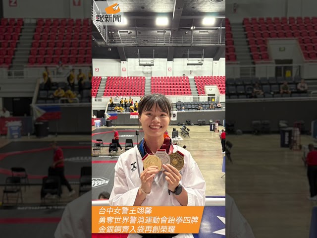 世界警消運動會再傳捷報!臺中市政府警察局交通警察大隊助教王翊馨代表我國參加2025年第21屆世界警察消防運動會跆拳道項目,展現堅強實力與不屈精神,榮獲【品勢】女子團體(18歲以上)金牌、女子個人(30歲以上)銀牌及混雙(18歲以上)銅牌,以及【對打】女子個人金牌,為國爭光,也為臺中警界再添榮耀。