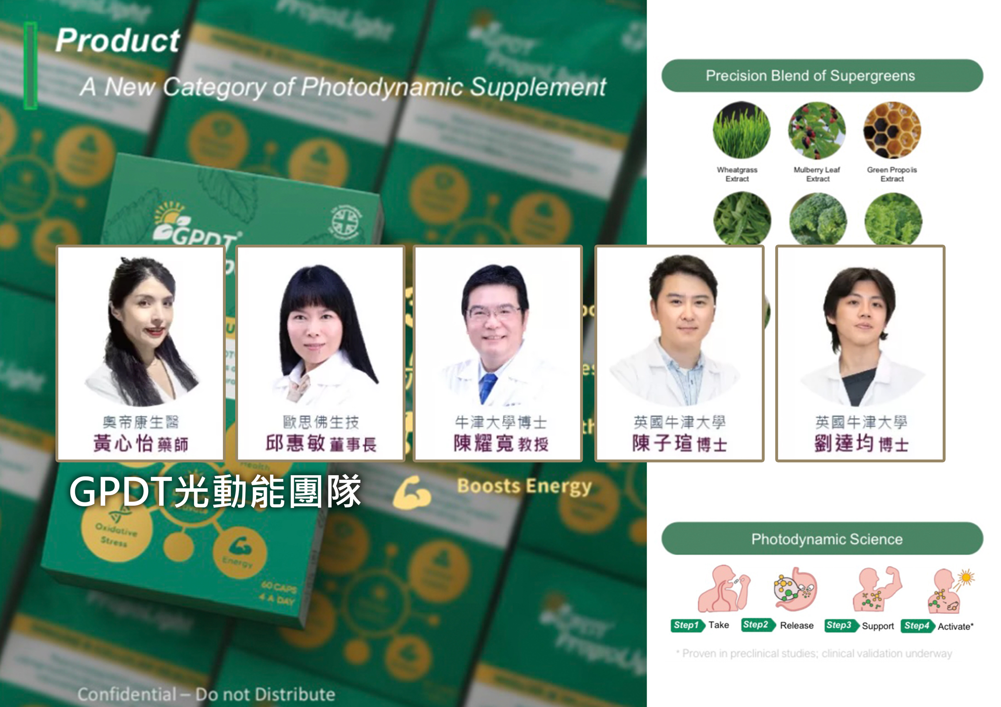 在亞洲年度最具代表性的創新創業盛會──2025 Meet Taipei 創新創業嘉年華中,英國奧帝康生醫(Oxperial BioHealth)攜全球首創的 GPDT®(Green Products Photodynamic Therapy) 技術隆重亮相。這項技術核心是「口服型葉綠素衍生物 + 可見光激發」的機制,經由陽光(400–700 nm 波長)啟動,促使體內活性氧(ROS)生成,被設計來提升身體的自然防護與修復力。奧帝康技術長陳子瑄博士(Dr. Daniel Tzu-Hsuan Chen)指出,這不只是保健品,而是把光動能引入日常營養補充的新世代平台。