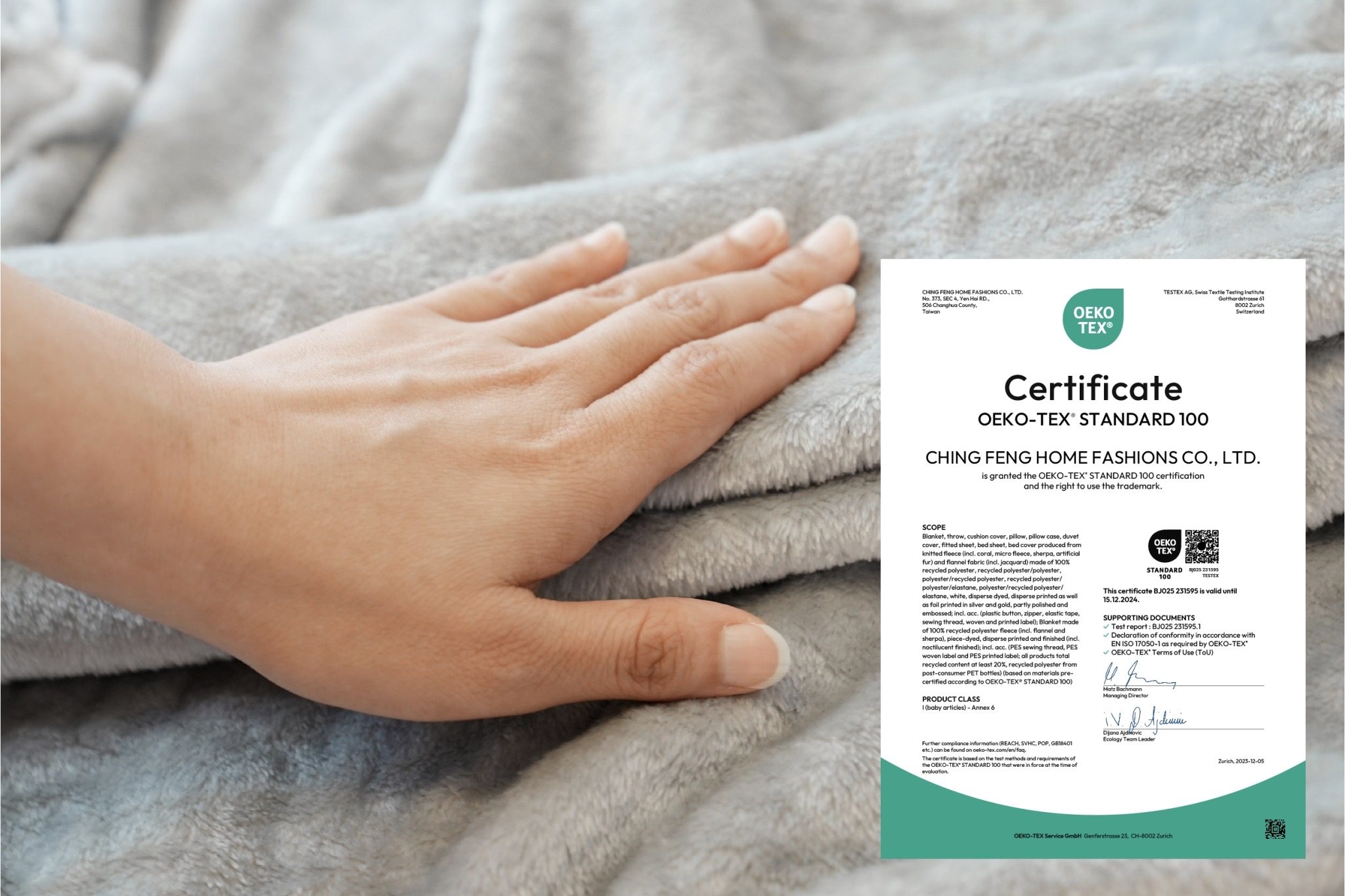 現代社會孩子生得少,父母特別注重居家用品的安全與品質,許多小朋友甚至成人長期都有肌膚敏感、紅腫發癢的困擾,芮格居家建議消費者在選購法蘭絨毛毯時,以通過「OEKO-TEX® Standard 100」的歐盟認證標章作為篩選重點之一,近來在親子居家開團時總是銷售一空。