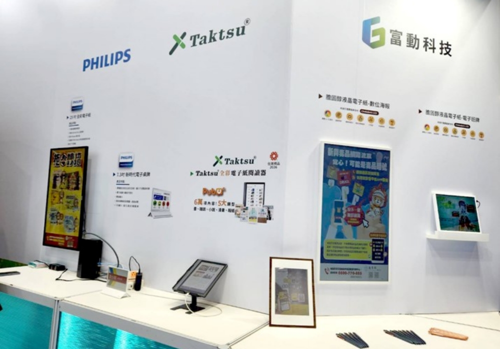 今日另一個吸引教育現場高度關注的亮點,是富動科技展出的Taktsu全彩電子紙閱讀器與大型與小型全彩電子紙顯示器。