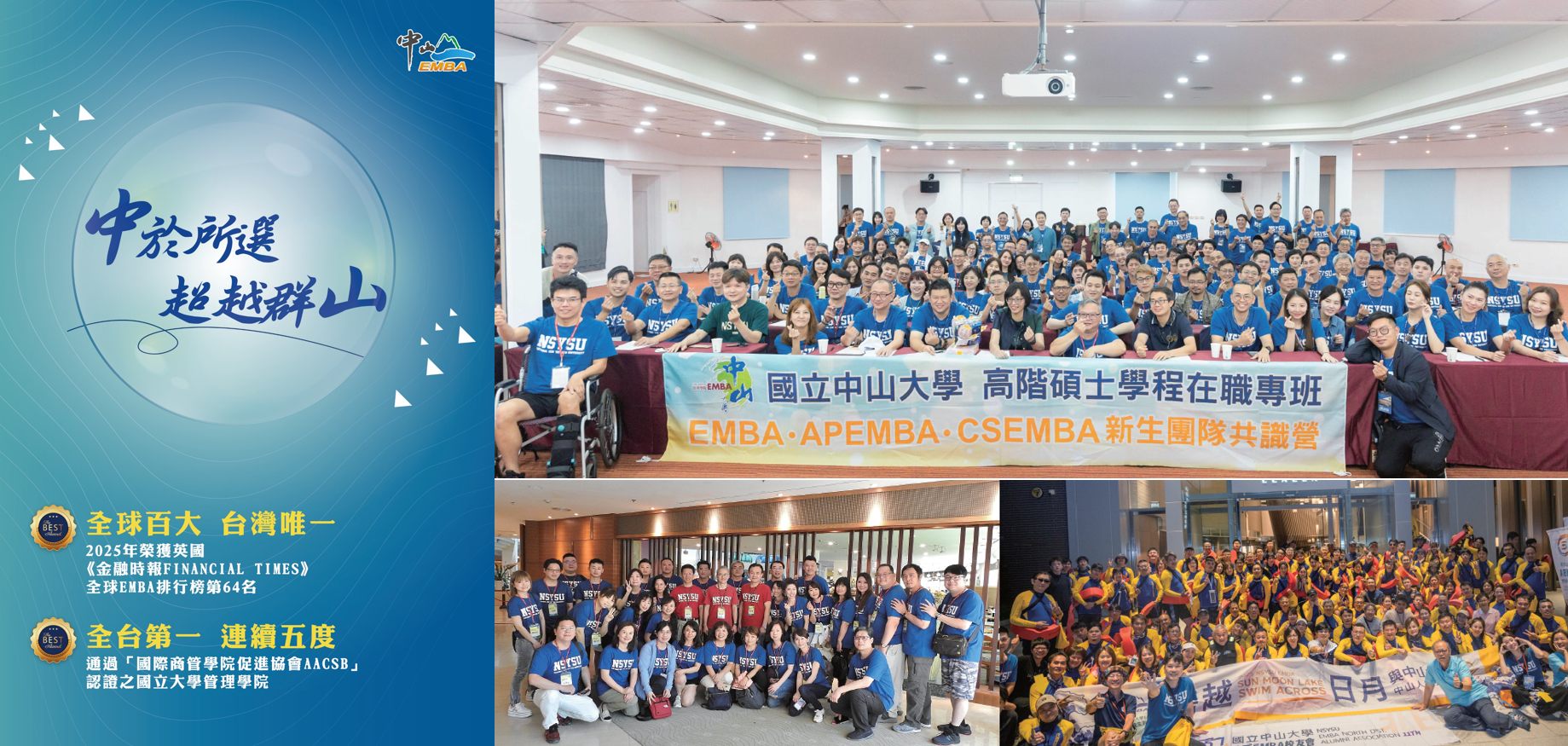 國立中山大學管理學院高階經營管理碩士在職專班(EMBA)再度以卓越的國際競爭力與學術實力榮登全球舞台。2025年榮獲英國《金融時報》(Financial Times)全球EMBA排行榜第64名,蟬連全台唯一入榜的國立大學EMBA。這項榮耀不僅彰顯中山大學在國際高階管理教育中的重要地位,更展現台灣學術界在全球舞台上的堅實實力。