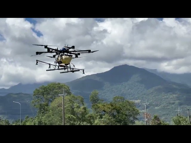 10月1日起,更有大型無人機正式投入各項實質救援工作,發揮「空中救援隊」的角色。這些無人機不僅協助國軍與環保局執行大面積環境噴藥,有效抑制病媒與汙染風險,也顯著減輕了傳統作業中人力背負噴藥設備、徒步穿越災區的沉重負擔。國軍弟兄一致讚許:「有了空中協助,工作效率提升好幾倍,安全性也大大提高。」