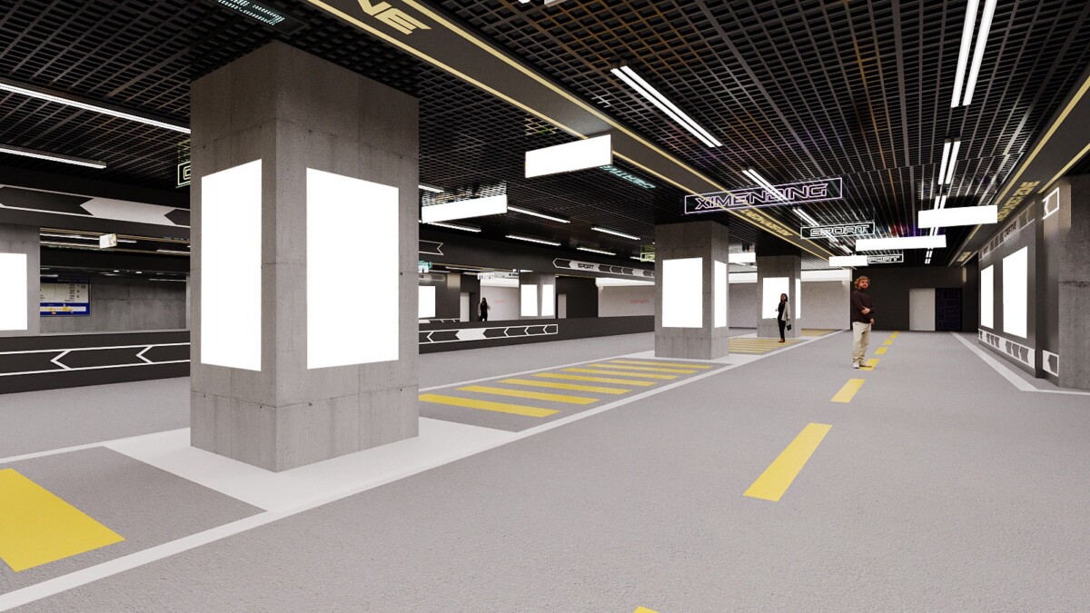 新想 Daydreamer 團隊以都會潮流為基調,將全長 215 公尺、總面積約 931 坪的地下空間,轉變成充滿未來感的「西門町地下市」。簡約且充滿現代風格的深灰色取代了花崗風格與柱體,以LED螢幕覆蓋,全天候播放多樣影音;再以黑底、亮彩線條及霓虹風格綴飾天花板。地板上的斑馬線與車道線設計,更是巧妙融入地下城的概念,一踏入,就像是穿越到了另一個不同的次元。