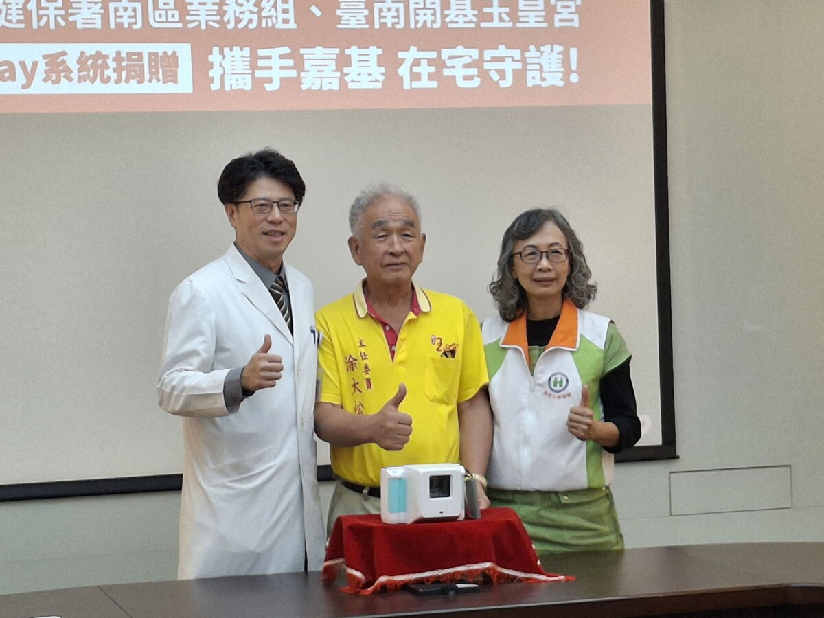 【記者 劉芳妃/嘉義市 報導】嘉義基督教醫院今(3)日獲臺南開基玉皇宮慷慨捐贈一台可攜式X光機。捐贈儀式於嘉基院內舉行,由南區健保署林純美組長與玉皇宮主委涂大松共同出席,攜手見證宗教團體與醫療體系合作守護社區健康的重要里程碑,更能提升居家醫療與偏鄉急症照護量能。