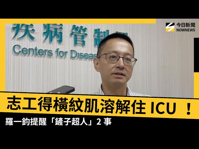 [NOWnews今日新聞] 花蓮馬太鞍溪堰塞湖溢流重創光復鄉,不少民眾自發前往協助災民復原家園,但有網友透露,身邊有人回來後,得了橫紋肌溶解症,「目前在加護病房急救,才82年次!」而疾管署長羅一鈞提到,救災工作後1、2天就直接因橫紋肌溶解症而嚴重到去住ICU的臨床表現發生,最可能還是「肌肉過度使用」。他也提醒,鏟子超人多喝水、有肌肉疲勞疼痛僵硬就趕快休息。