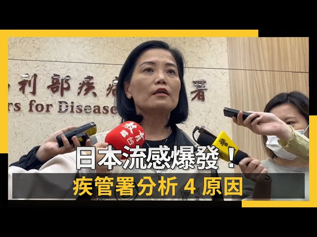 [NOWnews今日新聞] 日本流感爆發,疾管署提到,今年日本與台灣的疫情有點類似,提早約一個月進入流行期,個案數上週與前一週比起來多了1.5倍,個案數急遽增加。疾管署副署長曾淑慧分析,可能與4個原因有關。