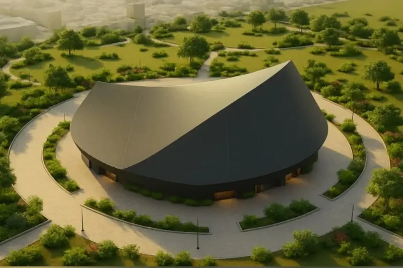 台中超巨蛋的模擬圖今曝光,市長盧秀燕透露她要求超巨蛋必須兼具建築美學。(圖/台中市議員陳政顯提供,2025.11.19)
