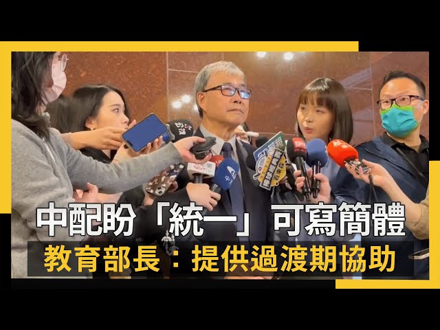 中配盼「快點統一」可寫簡體!教育部長回應