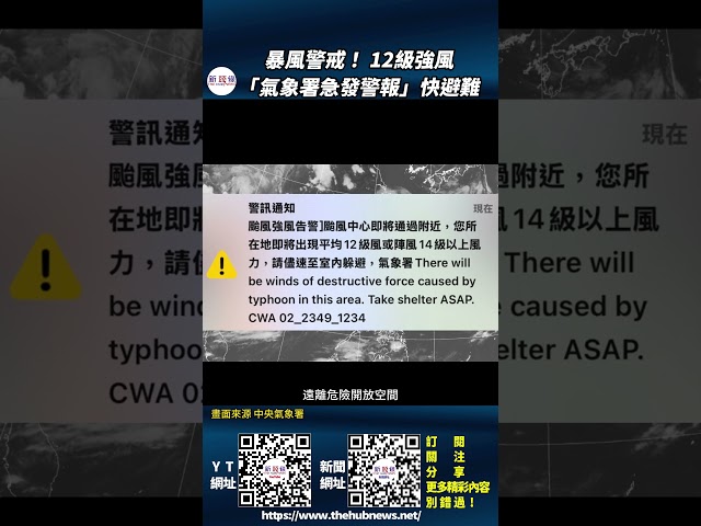 根據簡訊內容表示,「颱風中心即將通過附近,您所在地即將出現平均12級風或陣風14級以上風力,請儘速至室內躲避。」這次警告涵蓋的時間將持續至7日凌晨0時整,提醒民眾注意自身安全。