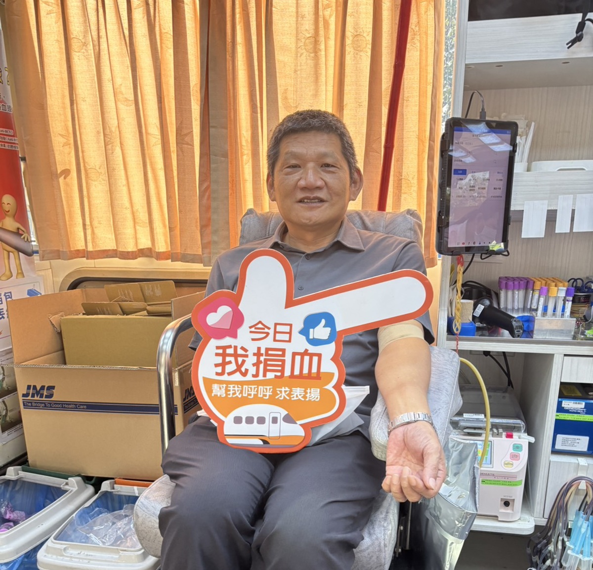 來自田中的釋自嚴師父說,由朋友處得知高鐵站今日有捐血活動,特地前來排隊捐血,她說高齡的母親生前臥病時曾在醫院接受輸血治療,得到大眾的幫助,現在自己有能力捐血理當回饋社會。