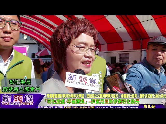 民進黨立法委員陳素月今(15)日舉辦記者會宣布參選彰化縣長,陳素月表示:「感恩鄉親的支持與肯定,讓素月在四屆的立委選舉中,能分別獲得53.61%、57.24%、53.42%、52.01%過半數以上的得票比例,票票都乘載著鄉親對素月的厚望,也是支撐素月前行的動力,更是素月全力以赴為民喉舌的最大後盾。」