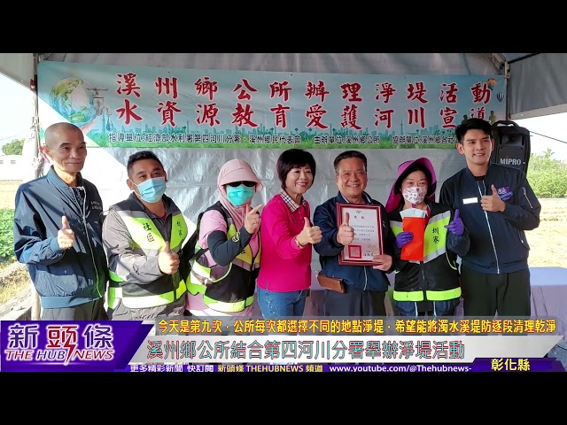 溪州鄉公所結合經濟部水利署第四河川分署為防治水資源遭受污染、提倡環保意識,特於今(22)日上午於溪州鄉圳寮村堤防邊,辦理第九次聯合淨堤活動,並號召鄉內300位社區社團環保志工共同參與。在鄉長江淑芬、鄉代會主席莊正雄及前立委鄭汝芬、縣政顧問劉侑信及縣府秘書林芳娟等貴賓見證下,先頒發社區環保競賽獎金及環保宣傳,在全體人員誓師後,分成三組路線同時進行,將堤防附近的周邊垃圾清理乾淨。