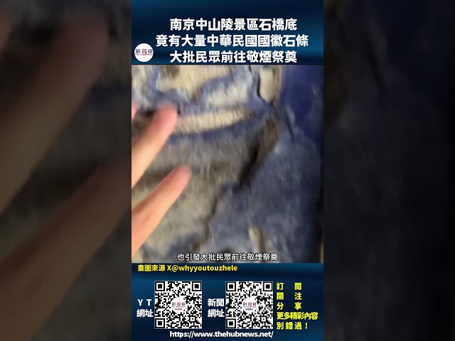 綜合外電最近有網友發現,南京中山陵景區內的一座石橋的橋底,竟然存有大量刻有中華民國國徽的石條,而這視頻發出後,也引發大批民眾前往敬煙祭奠,12月4日,景區也緊急將該橋洞封鎖。