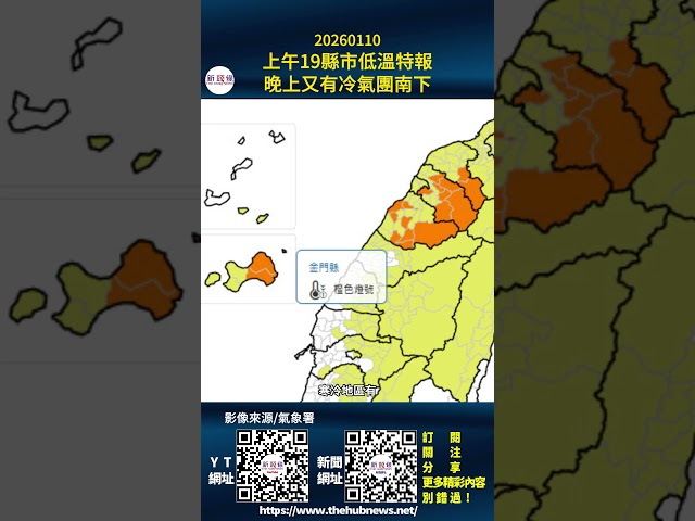 影音/0110上午19縣市低溫特報 晚上起又有冷氣團南下