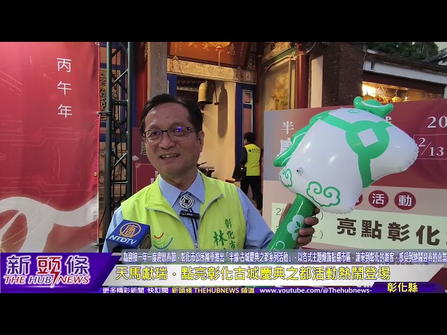 林世賢市長10日晚上6點在慶安宮由主持隆重的點燈儀式,全市沿永樂街與民族路長達1,000公尺,共計有4個主題城門意象燈飾、三角公園圓環上「祥城天馬」主題花燈、還有彰化車站、彰化藝術館與彰化公所廣場前充滿童趣大型充氣半半公仔裝飾與燈籠牆,以及慶安宮、關帝廟、聖王廟廟宇花燈也同步點亮,一起陪伴遊客過新年。