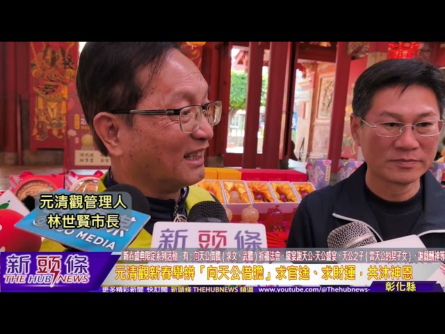 「好膽你就來」!元清觀新春舉辨「向天公借膽」求官途、求財運,共沐神恩!彰化元清觀(俗稱「天公壇」)建於西元1763年(清乾隆28年),至今已有263年歷史,是全國唯一國定古蹟的天公廟。元清觀今年春節期間,特別舉辦新春盛典限定系列活動,有:向天公借膽(求文、武膽)祈福法會、擺宴謝天公-天公盛宴、天公之子(當天公的契子女)、謝戲酬神等,元清觀管理人林世賢市長歡迎善信大德蒞臨參拜並共襄盛舉,共沐神恩!