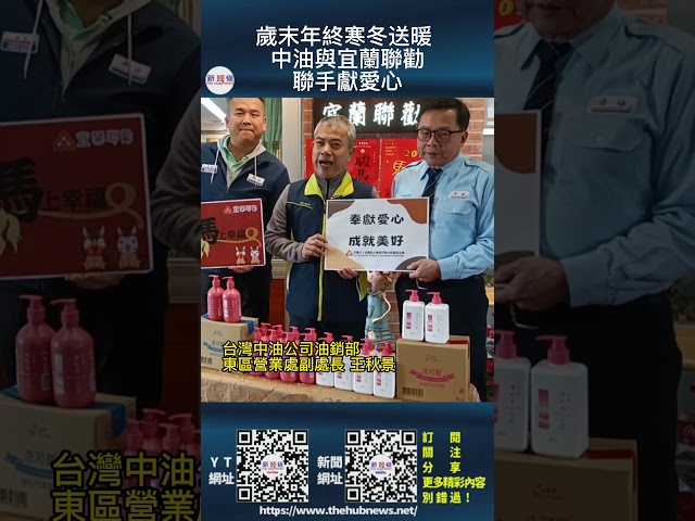 農曆新年將近,為關懷宜蘭縣內弱勢團體與家庭,台灣中油公司油銷部東區營業處副處長王秋景表示,中油與宜蘭聯勸攜手合作,由中油捐助192箱1152瓶,將近35萬元最新研發的中油洗沐產品,捐給宜蘭聯勸,在寒冬年節前夕,一起幫助需要被幫助的人。