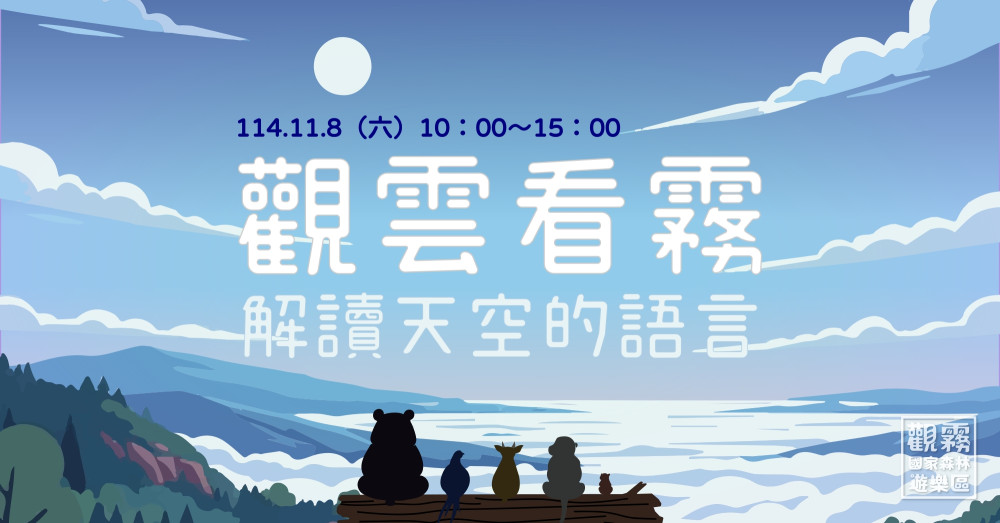 活動將於 11 月 8 日(六)上午 10 時至下午 3 時在觀霧國家森林遊樂區舉行,由「阿霞天空」創辦人——莊鎮豪老師主講。課程內容涵蓋雲霧的形成原理與山區特有的天氣現象,並透過小型實驗幫助學員直觀理解大氣運作,之後再前往園區觀察點,依當日天氣條件,有機會親眼目睹雲海湧動、霧氣翻騰或午後對流雨等自然景象,在現場講解中感受雲霧的奧妙。