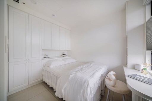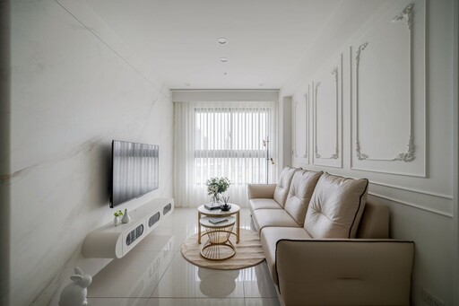 住宅展現的美感是由細節堆疊而成,從簡約的線條表現,到細緻的雕花裝飾,在和煦日光的照耀下,一抹清新優雅油然而生,恣意綻放出古典韻味又不失現代質感。四方丰巢創研設計團隊,將業主心中對家的期盼,以設計巧思讓小宅幻化成浪漫典雅居所,讓夫妻兩人迎接嶄新迷人的生活面貌。