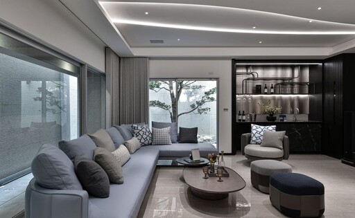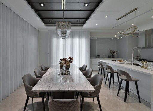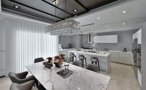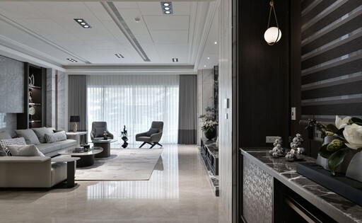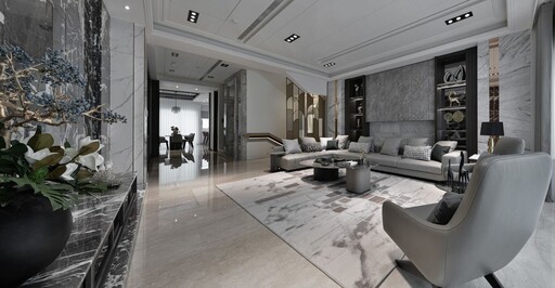 設計團隊針對透天豪宅注重的空間流暢與功能性為設計主軸,結合開放式設計,強調空間的舒適度與奢華感,並以材質、色調調和出現代與經典元素,賦予空間豐富的收納機能、流暢的格局動線、明亮舒適的自然採光,追求設計不僅僅是華麗品味的呈現,更賦予一個家充滿人與人的互動情感,勾勒出幸福的姿態。