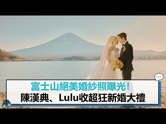 陳漢典、Lulu黃路梓茵日前宣布,將於1月25日在台北文華東方酒店舉辦婚宴。這對去年10月20日完成結婚登記的夫妻,近日曝光於日本富士山拍攝的婚紗照,Lulu身穿純白婚紗,低胸剪裁搭配長頭紗,氣質優雅宛如湖中女神;畫面中兩人在富士山前浪漫依偎、親密碰鼻。同時揭曉藏滿巧思的喜帖設計,從取景地點到視覺細節,瀰漫幸福滿溢氛圍。