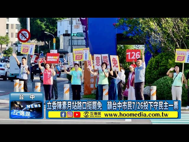 立委陳素月站路口挺罷免 籲台中市民7/26投下守民主一票