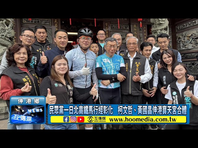 影/民眾黨一日北高鐵馬行經彰化 柯文哲、黃國昌伸港寶天宮合體