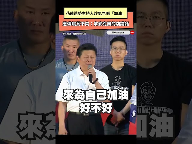 [NOWnews今日新聞] 國民黨花蓮縣黨部今(1)日在地方舉行「花蓮反惡罷團結大會」,動員數千人為藍委傅崐萁造勢,包括縣長徐榛蔚、藍白立委、黨主席朱立倫與「館長」陳之漢都到場力挺,傅崐萁壓軸致詞時,喊道「親愛的鄉親我們一起為自己加油,讓我聽到你的聲音!」主持人為炒熱氣氛附和高呼「加油」,卻惹傅崐萁不爽當場指責「拿麥克風的不要講話!」