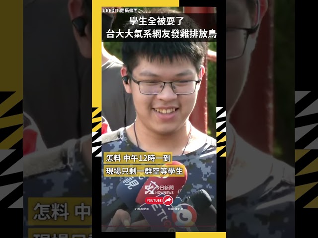 [NOWnews今日新聞] 一名自稱台大大氣系學生的網友,日前因預測台北市會放颱風假的預言失準,宣布今(16)日在台大校園內發放雞排,還沒到中午12時,現場聚集超多學生,更有人上午8時就來了。怎料,中午12時一到,現場只剩一群空等學生,該位自稱台大大氣系學生的網友未現身,有學生受訪時直呼,會繼續等下去,再沒等到就要去吃飯。